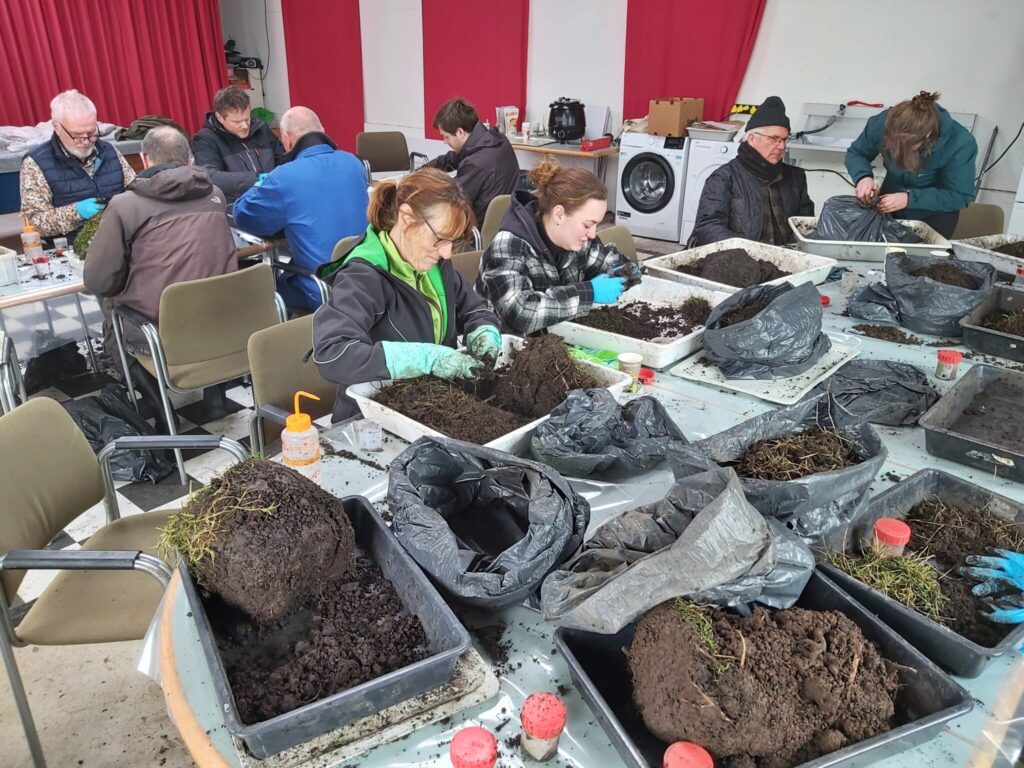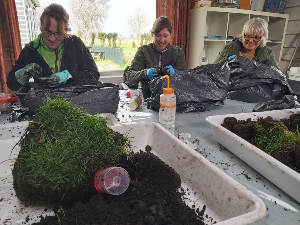 We waren te gast bij de familie Beentjes te Kwadijk, waar we in de kantine van de boerencamping ons centrale onderkomen vonden. Hier hebben in totaal 24 vrijwilligers 96 bodemmonsters uitgezocht op regenwormen. Het was weer een bont gezelschap bestaande uit boeren, burgers, biologen, beheerders en bestuurders afkomstig van organisaties aangesloten bij VeenVitaal. Met als gemene deler hun interesse voor het beschermen van weidevogels. Dit jaar hebben Staatsbosbeheer en het Agrarisch Collectief Water, Land en Dijken ons geholpen bij de organisatie, het vinden van een onderkomen en het uitzetten van de aankondiging van de dag onder hun leden.
